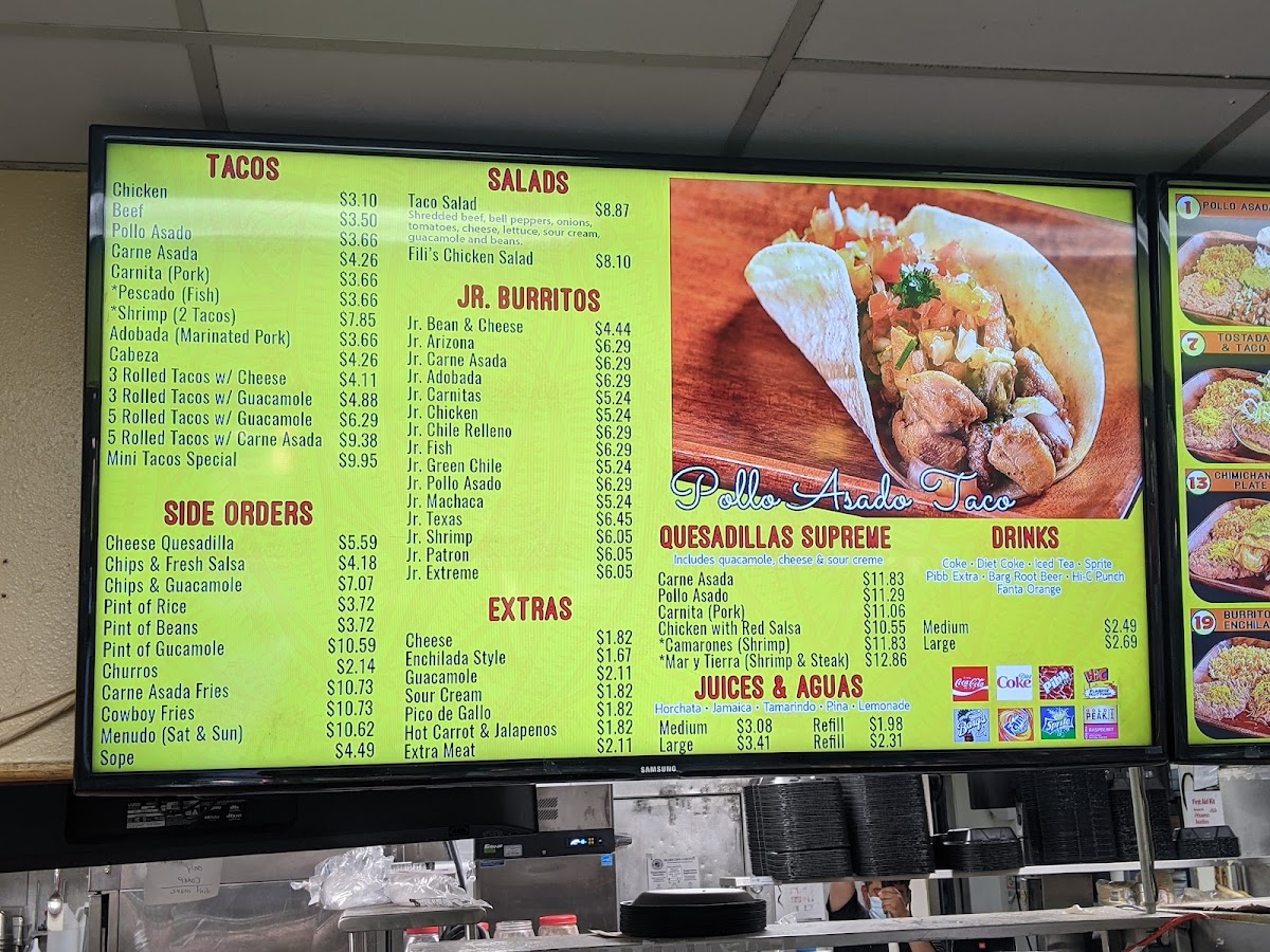 Filiberto's Mexican Food Menu